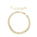 14K Two Tone Flat Curb White Diamond Cut Bracelet 6mm 8 Inches